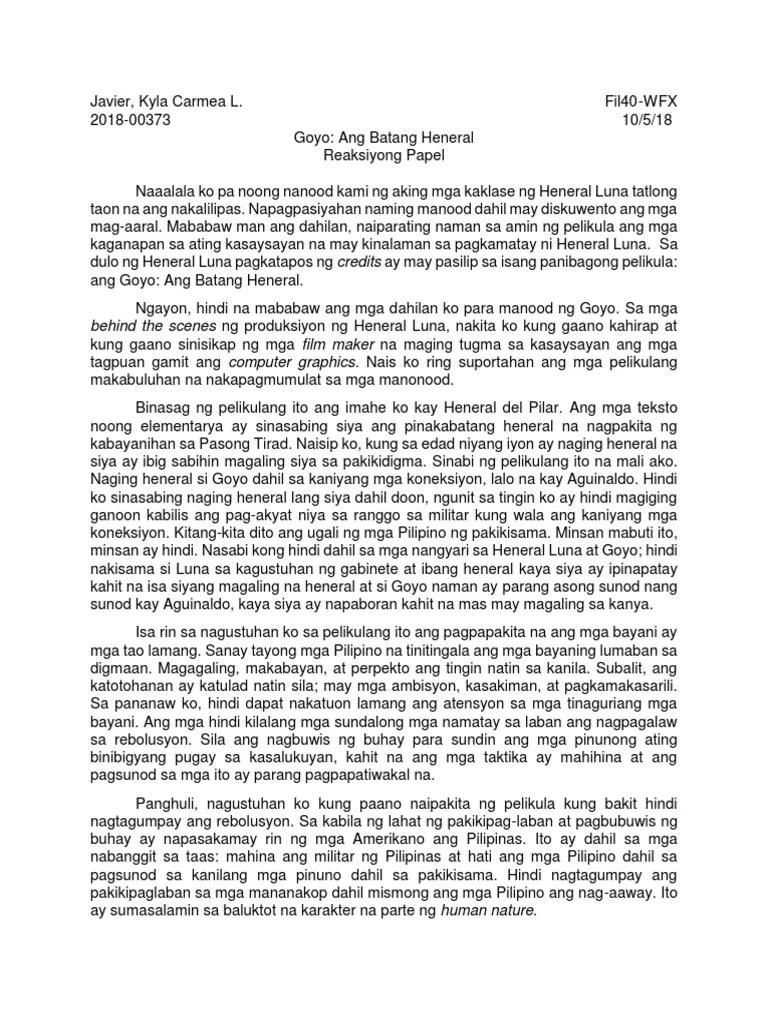 Reflection Paper In Tagalog : Reaction Paper In The Movie Jose Rizal : Derbyshire et al, 1912 the young and idealistic juan crisostomo ibarra returns home after seven years in europe.. Matapos kong mapanuod ang pelikulang pinamagatang "heneral luna" As of yesterday, april 4th, the official count is that there are 1,890 confirmed cases, 634 recoveries, and 79 deaths in mexico. Finish your essay in 30 minutes! Your thesis is reflective essay example tagalog delivered to you reflective essay example tagalog ready to submit for faculty review. Toefl essay and many more.